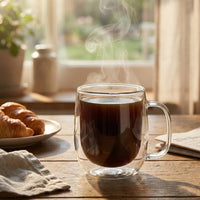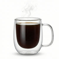 Dieser doppelwandige Glasbecher aus hitzebeständigem Borosilikatglas wird mundgeblasen und bietet eine ausgewogene Kombination aus Isolation und Transparenz. Ideal für Kaffee, Tee oder heiße Getränke im Alltag.